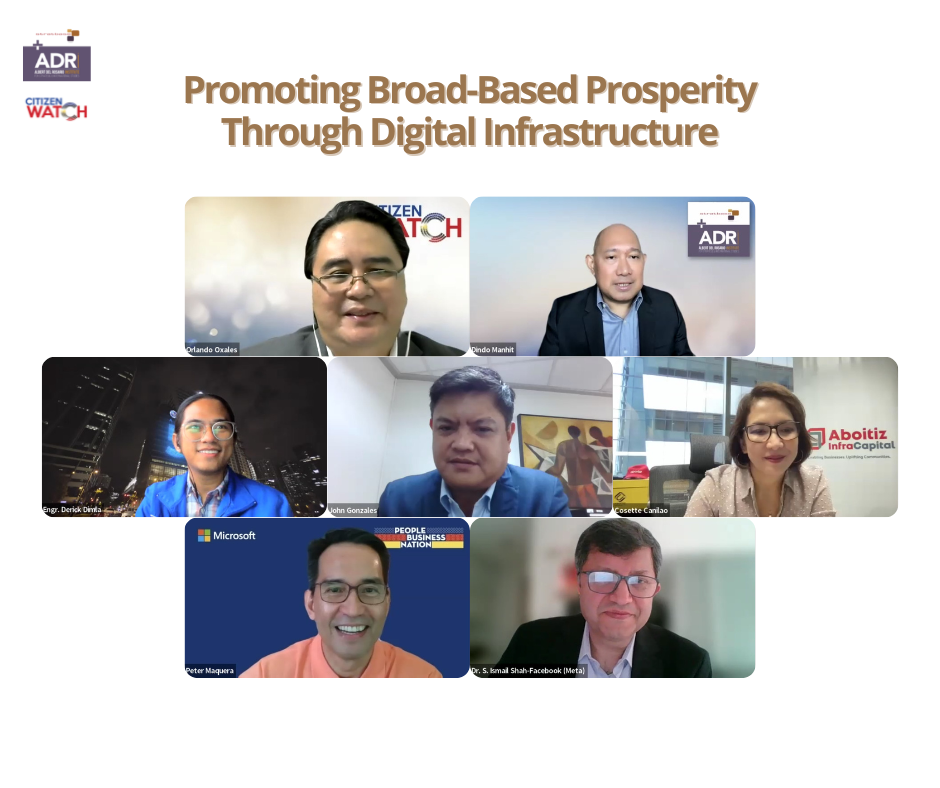 In this light, the Stratbase ADR Institute, in partnership with CitizenWatch Philippines, organized its third virtual business roundtable discussion this year, entitled “Promoting Broad-Based Prosperity Through Digital Infrastructure,” which was held on 7 September 2022, Wednesday, from 9:00 AM to 11:30 AM (Manila Time) via Zoom Webinar.
