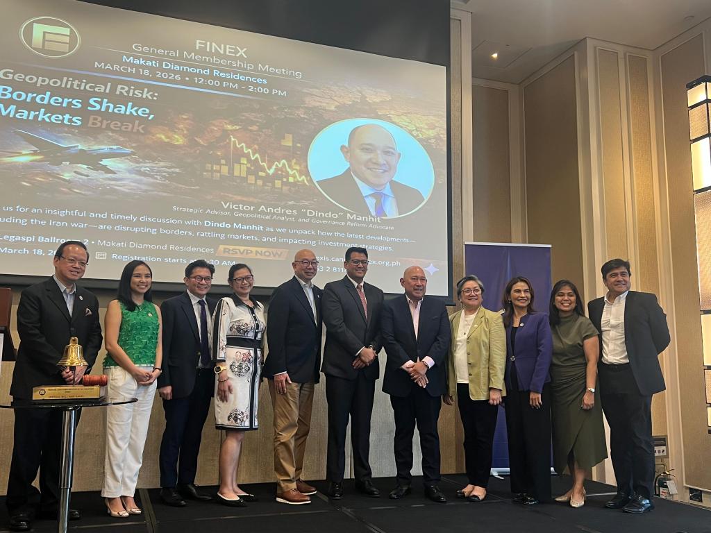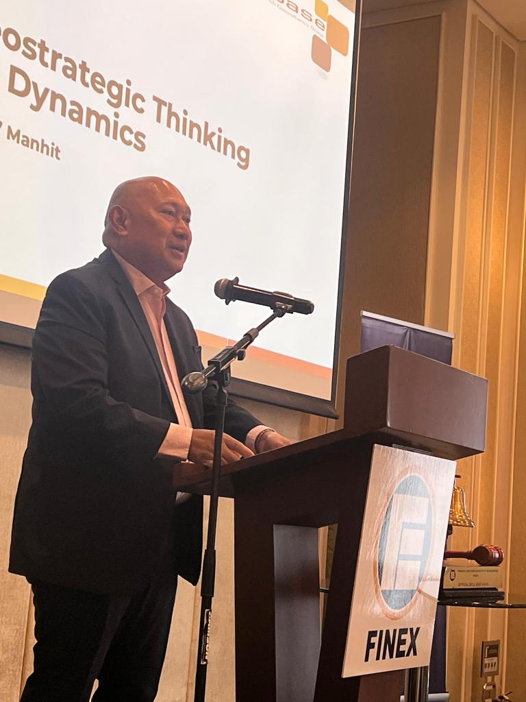 Stratbase Institute President and CEO Prof. Dindo Manhit was invited as the main speaker at the General Membership Meeting of Financial Executives Institute of the Philippines (FINEX) focusing on the theme of “Geopolitical Risk: Borders Shake, Markets Break”. The meeting was held at the Makati Diamond Residences, Makati City.